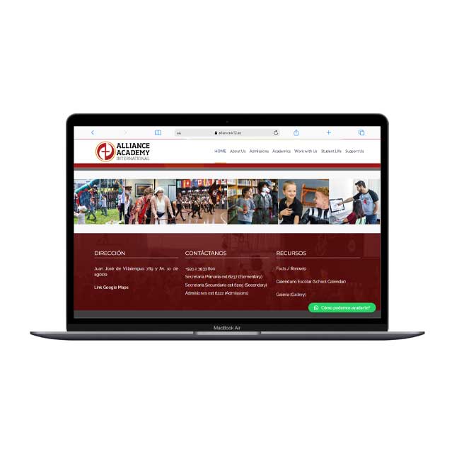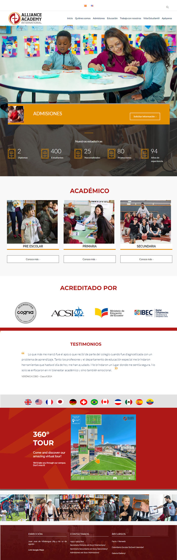 Corporate and institutional web project for the prestigious Alliance Academy, located in the heart of Quito, Ecuador.
